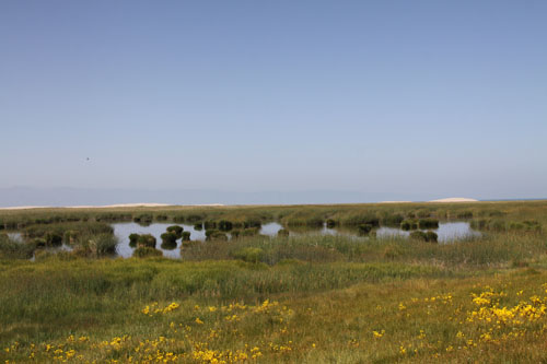 上午10時(shí)許,我們來(lái)到了此次活動(dòng)的第一個(gè)目的地——小泊湖,我們將從這里開(kāi)始徒步穿越牧區(qū),走近青海湖。這一路,雖然走的很累,但是周?chē)娘L(fēng)景確實(shí)很美。我們走過(guò)了沙丘和濕地,潔白的沙地讓人有上去打個(gè)滾的沖動(dòng),而那一片隱藏在高原之上的濕地中,黃色野花點(diǎn)綴其間,間或有幾只鳥(niǎo)飛過(guò),美麗的風(fēng)景使人忘卻了勞累。經(jīng)過(guò)大約一小時(shí)的行走后,我們終于走到了美麗的青海湖畔。在湖邊同事們做的第一件事情不是休整,而是挽起褲腳走進(jìn)青海湖,率先到達(dá)的男同事們已經(jīng)開(kāi)始打起了水仗,最后抵達(dá)的人便及女同事們則淋成了落湯雞。在湖邊嬉戲、休整后,進(jìn)行了團(tuán)隊(duì)游戲環(huán)節(jié)。在游戲過(guò)程中,我們領(lǐng)會(huì)到了團(tuán)隊(duì)的力量——只有互相幫助,才能共同完成任務(wù)。