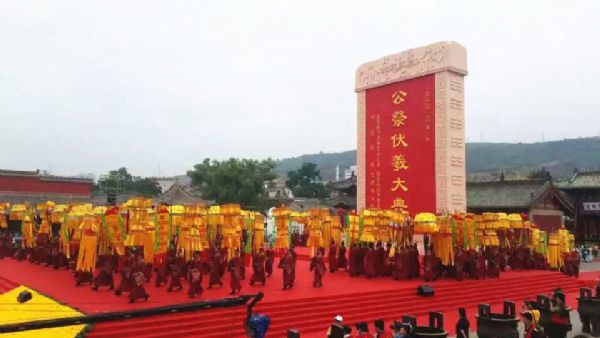 6月22日上午,由國(guó)務(wù)院港澳事務(wù)辦公室、國(guó)務(wù)院臺(tái)灣事務(wù)辦公室、中國(guó)僑聯(lián)和甘肅省人民政府主辦,甘肅省文化廳、天水市人民政府承辦的2015(乙未)年公祭中華人文始祖伏羲大典在天水市伏羲廣場(chǎng)隆重舉行。全國(guó)政協(xié)副主席馬飚宣布公祭伏羲大典開(kāi)始。中國(guó)國(guó)民黨榮譽(yù)副主席蔣孝嚴(yán)、甘肅省人民政府省長(zhǎng)劉偉平、甘肅省政協(xié)主席馮健身等出席。此次大典的主題為“同根同祖 中華共祭”,海內(nèi)外華夏兒女匯聚羲皇故里,感懷伏羲功績(jī)、傳承中華文明,表達(dá)對(duì)伏羲的虔誠(chéng)敬仰。