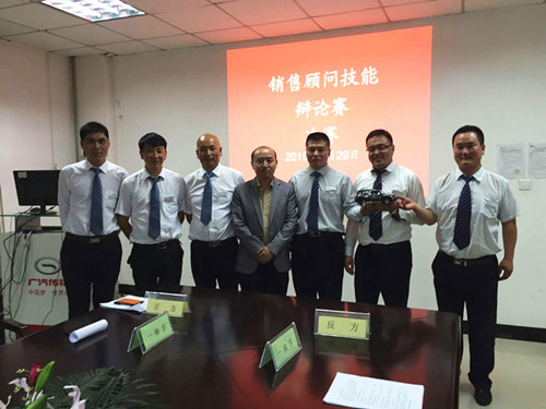本次辯論正反方由抽簽選出,擔當正方的是獵豹銷售部,反方為傳祺銷售部。當日下午4時40分,比賽正式開始。辯論賽首先由雙方簡明扼要闡述各自觀點,接下來進入雙方攻辯階段。首先,正方提出,“都說態(tài)度決定一切,沒有積極向上、真誠待人的態(tài)度就不能做好后期的服務(wù)工作!狈捶接枰苑瘩g,“態(tài)度再好,客戶再滿意,就是不買車該怎么辦?只能運用技巧說服客戶購車,相比較態(tài)度,技巧更重要!庇纱,雙方辯手運用各自在日常工作中的經(jīng)驗,結(jié)合現(xiàn)場隨時發(fā)生變化的優(yōu)劣勢進行“你來我往”的對決。雙方辯手靈活的思維和縝密的邏輯推理,不時的贏得場下陣陣掌聲。