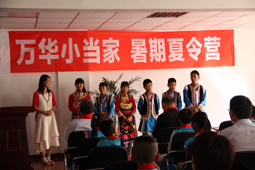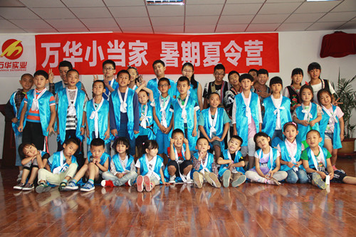 華嚴(yán)文化的義工老師為孩子們安顧好床位,下午4時(shí)整,開(kāi)營(yíng)儀式正式舉行。萬(wàn)華集團(tuán)總經(jīng)理牛新偉致辭表示,感謝華嚴(yán)文化的羅老師和“小水滴”體驗(yàn)營(yíng)張莉老師。“在兩位老師的全力幫助下,促成了本期夏令營(yíng)的順利舉辦。張老師和羅老師多年來(lái)致力于弘揚(yáng)優(yōu)秀的民族本土文化,并通過(guò)長(zhǎng)期堅(jiān)持不懈的實(shí)踐,獲取了非常寶貴的經(jīng)驗(yàn),是可敬的人。城市里長(zhǎng)大的孩子重學(xué)習(xí),輕自理,生活實(shí)踐很少,不懂得分擔(dān),希望通過(guò)‘萬(wàn)華小當(dāng)家’夏令營(yíng)的舉辦,讓萬(wàn)華的孩子從小當(dāng)家課程的學(xué)習(xí)體驗(yàn)開(kāi)始,從小當(dāng)家最終做到大當(dāng)家!”