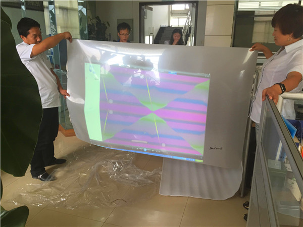 盡管沒(méi)有專門的調(diào)試場(chǎng)所,公司員工在集團(tuán)二樓的過(guò)道、走廊架起了投影機(jī),拉起了調(diào)光膜,對(duì)其進(jìn)行一遍又一遍的調(diào)試。因?yàn)檎{(diào)光膜是新型產(chǎn)品,所以在沒(méi)有實(shí)驗(yàn)以前不知道會(huì)有什么樣的效果,這就需要工作人員對(duì)其進(jìn)行反復(fù)的實(shí)驗(yàn),確保投影畫面達(dá)到最清晰的效果,給客戶一個(gè)滿意的答復(fù)。
