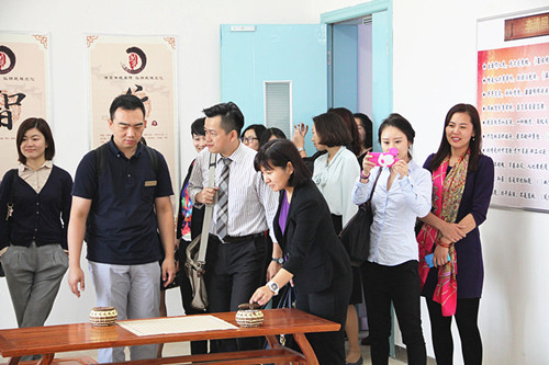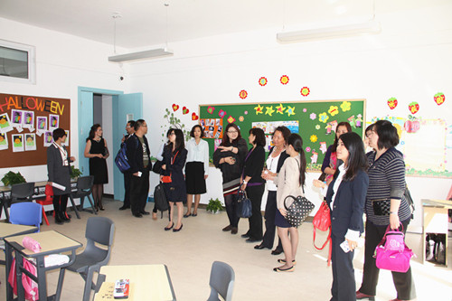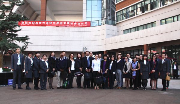 加拿大駐北京大使館商務(wù)專員司馬天明先生和張可先生,以及來自加拿大26所大學(xué)的教育代表32人,依次參觀了蘭州萬華中加國際學(xué)校的高爾夫教室、國學(xué)教室、臺球室、瑜伽館、游泳館、乒乓球館、籃球館、計算機教室、學(xué)生教室、學(xué)生宿舍及風(fēng)雨操場,學(xué)校老師用流利的中英雙語向代表團介紹了各個功能室及區(qū)域。