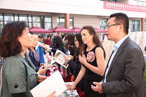 10月19日下午2時30分,加拿大大使館組織加拿大26所大學(xué)教育代表團到蘭州萬華中加國際學(xué)校參觀訪問,并出席學(xué)校舉辦的首屆蘭州萬華中加國際學(xué)校教育展和“蘭州學(xué)子留學(xué)加拿大專場咨詢會”活動。當日來自約克大學(xué)、渥太華大學(xué)、圣托馬斯大學(xué)、西安大略大學(xué)、溫尼伯大學(xué)等26所加拿大高等學(xué)府的教育代表,將各個學(xué)校的特色和資源帶到蘭州,為家長和師生作全面展示,詳盡解讀留學(xué)政策,指導(dǎo)升學(xué)秘笈。