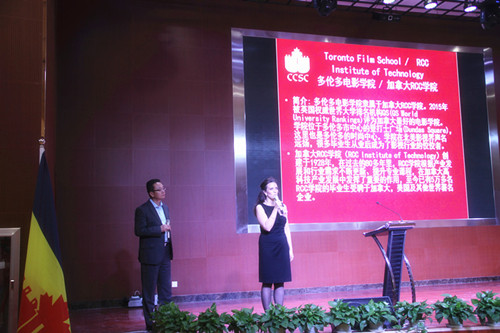 下午3時,蘭州萬華中加國際學(xué)校報告廳座無虛席,幾曲旋律優(yōu)美的古箏和鋼琴演奏之后,加方代表向蘭州學(xué)生家長們圖文并茂地介紹了加拿大教育資源優(yōu)勢。加拿大駐華大使館商務(wù)專員司馬天明介紹了此次代表團來蘭目的和意義,張可先生現(xiàn)場分享加拿大教育概況和留學(xué)政策等信息。隨后,各校代表們分別介紹了所在大學(xué)的辦學(xué)特色。