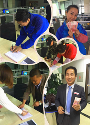 為了使員工的父母能夠在重陽(yáng)節(jié)當(dāng)天感受到企業(yè)和工會(huì)的關(guān)愛, 9月21日重陽(yáng)節(jié)當(dāng)天下午,工會(huì)工作人員專程前往集團(tuán),將慰問金發(fā)放到每一位員工的手上!斑@是工會(huì)專門為老人家準(zhǔn)備的福利,請(qǐng)大家轉(zhuǎn)達(dá)工會(huì)對(duì)老人的祝福,把錢送到父母的手中!惫ぷ魅藛T不時(shí)跟大家說明。一位員工領(lǐng)完慰問金后非常感慨地說道:“我的老父親今年已經(jīng)72歲了,我這就打個(gè)電話給他們,說我的單位給他們發(fā)錢了!”另一位員工說“逢年過節(jié)的時(shí)候,單位都給我們發(fā)福利,但是給父母發(fā)福利的,我這還是頭一回領(lǐng),真的很感謝你們!”