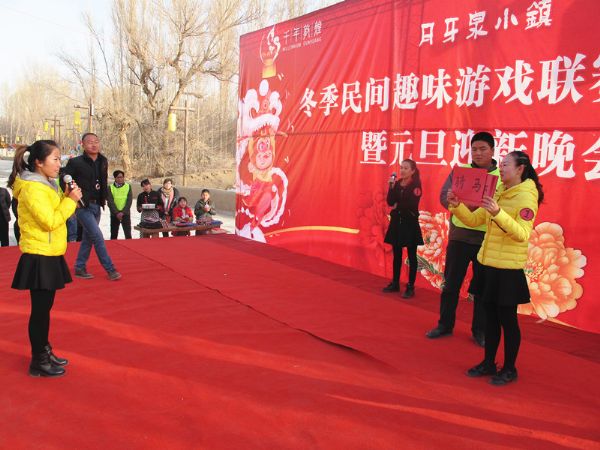 月牙泉小鎮(zhèn)冬季民間趣味游戲聯(lián)賽自2015年11月22日開始以來,受到廣大市民、社會團(tuán)體和游客的喜愛及積極參與。經(jīng)過一個(gè)多月的趣味游戲比賽,共有180多個(gè)團(tuán)隊(duì)、500多人次進(jìn)行角逐,10多個(gè)團(tuán)隊(duì)入圍半決賽。1月1日,月牙泉小鎮(zhèn)冬季民間趣味游戲聯(lián)賽總決賽在小鎮(zhèn)中心廣場進(jìn)行最后角逐。