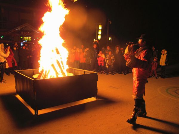 下午7時(shí)30分,客人們品嘗美食之后,迎新年篝火晚會在月牙泉小鎮(zhèn)中心廣場正式開始。紅紅的篝火燃燒起來了,歡快的音樂響起來了,由千年敦煌·月牙泉小鎮(zhèn)商戶才旦帶頭,客人們圍成一個(gè)圈,圍著篝火唱著、跳著、陶醉著……