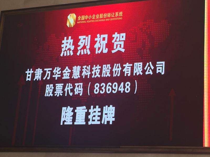 6月17日,甘肅萬華金慧科技股份有限公司(簡稱:萬華金慧;股票代碼:836948)新三板掛牌開市敲鐘儀式在北京舉行。萬華金慧董事長牛新民、副董事長牛新偉、總經(jīng)理施強(qiáng)及高管團(tuán)隊(duì)出席掛牌開市敲鐘儀式,共同見證萬華金慧這一里程碑式的重要時(shí)刻。
