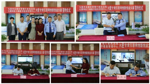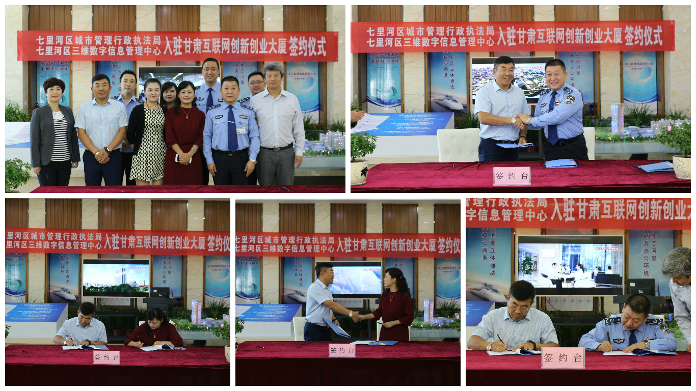 9月8日上午10時(shí),甘肅互聯(lián)網(wǎng)創(chuàng)新創(chuàng)業(yè)大廈首批入駐政府單位簽約儀式在大廈商務(wù)展示中心如期舉行。蘭州市七里河區(qū)城市管理行政執(zhí)法局局長(zhǎng)朱永強(qiáng)、副局長(zhǎng)管永祥,蘭州市七里河區(qū)三維數(shù)字信息管理中心主任劉蘊(yùn)潮、副主任蔣海燕,甘肅萬(wàn)華實(shí)業(yè)集團(tuán)有限公司董事長(zhǎng)牛新民、開(kāi)發(fā)部總經(jīng)理杜牧拉等嘉賓出席了簽約儀式。簽約儀式現(xiàn)場(chǎng),七里河區(qū)城市管理行政執(zhí)法局、七里河區(qū)三維數(shù)字信息管理中心先后簽訂了入駐大廈協(xié)議。