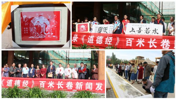 道德千載逢甘露,篆刻經(jīng)文破紀(jì)錄,敦煌文博開新風(fēng),老子文化傳千秋。9月19日上午,由敦煌正覺寫經(jīng)院院長王淑萍斥巨資打造的篆刻《道德經(jīng)》百米長卷新聞發(fā)布會在月牙泉小鎮(zhèn)隆重舉行。