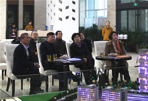 蘇君主席一行首先來到位于雙創(chuàng)大廈一樓的商務(wù)展示中心,聽取了講解員對(duì)雙創(chuàng)大廈智能用電控制系統(tǒng)、精細(xì)化能源管控系統(tǒng)、室內(nèi)環(huán)境監(jiān)測(cè)、智慧安全預(yù)警系統(tǒng)、訪客二維碼管理系統(tǒng)、智慧停車引導(dǎo)系統(tǒng)等9大數(shù)字化功能模塊和12個(gè)智慧子系統(tǒng)的詳細(xì)介紹。