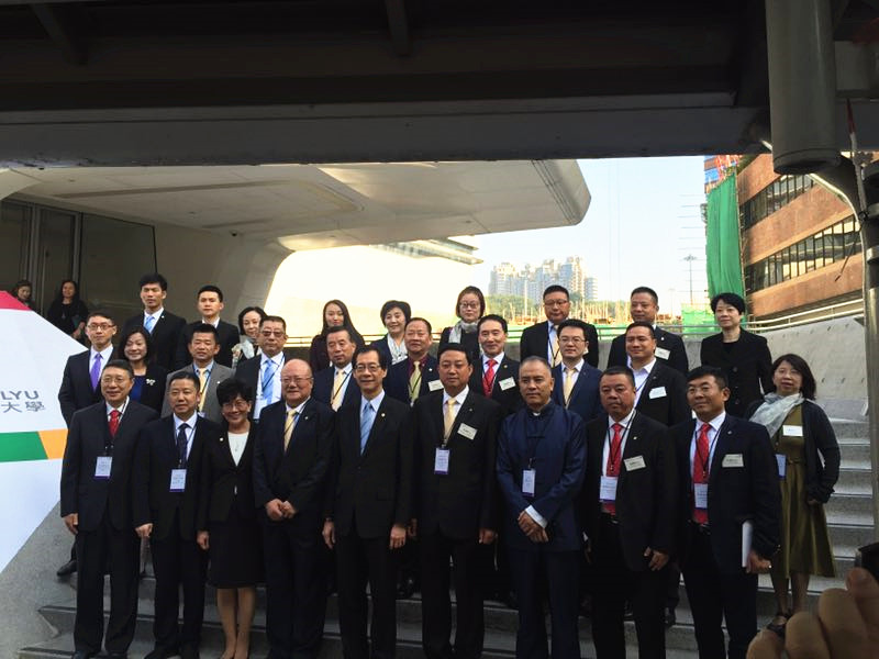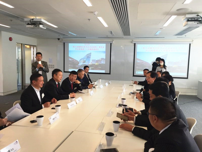 香港理工大學(xué)校董會(huì)主席陳子政先生與香港理工大學(xué)校長唐偉章教授為牛新民董事長頒獎(jiǎng)并合影。