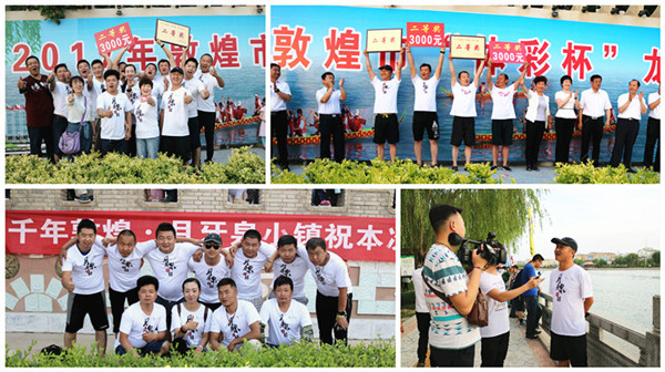 龍舟大賽將競技體育和傳統(tǒng)文化融為一體,充分展現(xiàn)了敦煌兒女的精神力量和文化魅力。月牙泉小鎮(zhèn)龍舟隊員全部由月牙泉小鎮(zhèn)的商戶組成,他們是:“重慶小面”杜秦川、“三套車”吳國輝、“骨頭記”吳澤軍 、“孫記肉夾饃”張敬恩、“大漠豬蹄”張廣東、“陜西鍋貼”高光子、“金砂酒坊”吳生祿、“小時光酒吧”李小棟 、“手工麻花”屈永利、“便利店”呂大偉、“沙療體驗中心”李媛。