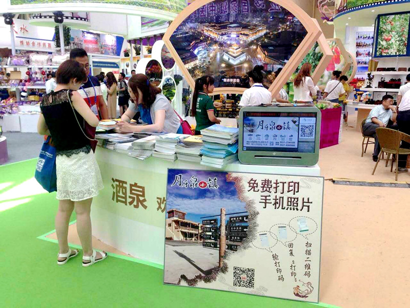 蘭洽會期間,千年敦煌以開放的姿態(tài)宣傳展示自己,讓更多的人們關注了解絲綢之路上的文化旅游體驗地——千年敦煌。一沙一世界,一塵一佛國。千年,時間的經度,敦煌,地域的緯度……展館大屏幕上,千年敦煌項目宣傳片以實景與三維相結合的形式,全面展示著充分挖掘厚重歷史文化資源和豐富自然人文景觀的千年敦煌項目。工作人員派發(fā)宣傳資料和廣告扇,及時回答參觀者的咨詢和提問;廴A樂居還特別推出微信掃碼打印照片活動,與參展人員展開親密互動,收到了良好的宣傳效果。