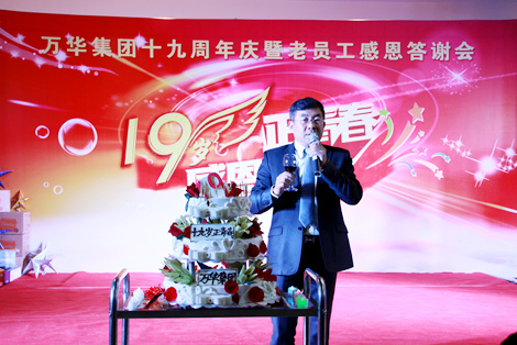 12月12日17時30分,“萬華集團十九周年慶暨老員工感恩答謝會”在甘肅互聯(lián)網(wǎng)創(chuàng)新創(chuàng)業(yè)大廈配屬餐廳如期舉行。萬華集團董事長牛新民、總經(jīng)理牛新偉、高級顧問劉運利、集團各職能部門和下屬各公司高管與120余名萬華老員工們歡聚一堂,感恩互謝,共敘情誼。