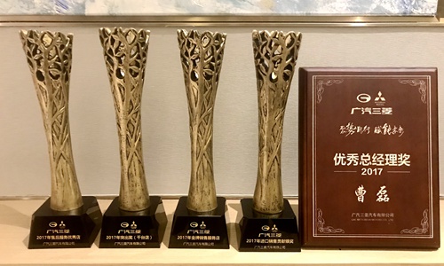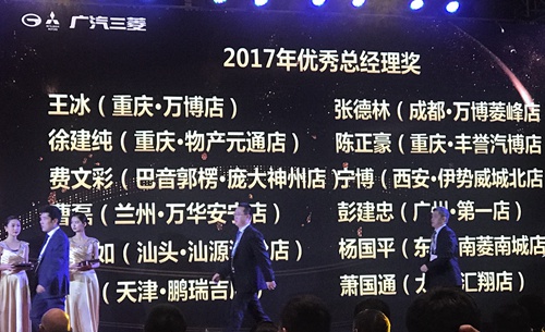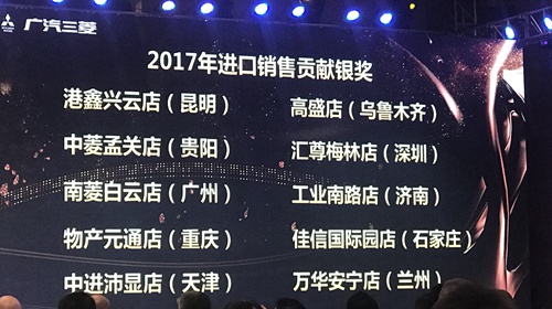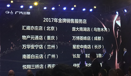 1月15日,“聚勢(shì)前行 賦能未來(lái)”廣汽三菱銷(xiāo)售服務(wù)店年會(huì)在廈門(mén)舉行,甘肅萬(wàn)華汽車(chē)銷(xiāo)售有限公司總經(jīng)理曹磊、常務(wù)副總經(jīng)理王文彬,天水勝華汽車(chē)銷(xiāo)售服務(wù)有限公司總經(jīng)理白鵬飛應(yīng)邀出席。憑借著出眾的企業(yè)實(shí)力、銷(xiāo)售業(yè)績(jī)與品牌服務(wù),會(huì)上喜報(bào)頻頻傳來(lái):甘肅萬(wàn)華汽車(chē)銷(xiāo)售有限公司在全國(guó)數(shù)百家廣汽三菱經(jīng)銷(xiāo)商中,以?xún)?yōu)異成績(jī)榮獲廣汽三菱2017年金牌銷(xiāo)售服務(wù)店、2017年進(jìn)口銷(xiāo)售貢獻(xiàn)銀獎(jiǎng)、2017年突出獎(jiǎng)(千臺(tái)店)、2017年售后服務(wù)優(yōu)秀店、2017年優(yōu)秀總經(jīng)理獎(jiǎng)(曹磊)共5項(xiàng)大獎(jiǎng),為甘肅萬(wàn)華驕人成績(jī)單再添絢爛一筆。