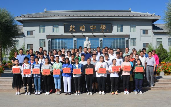 8月17日上午10時(shí),敦煌市工商聯(lián)“光彩助學(xué)行”活動(dòng)在敦煌中學(xué)舉行。敦煌千年古城文化發(fā)展有限公司副總經(jīng)理牛英霓、甘肅絲路敦煌山莊酒店有限責(zé)任公司總經(jīng)理杜亞東等9家企業(yè)和今年新考入大學(xué)的24名學(xué)生及家長參加了捐助活動(dòng)。