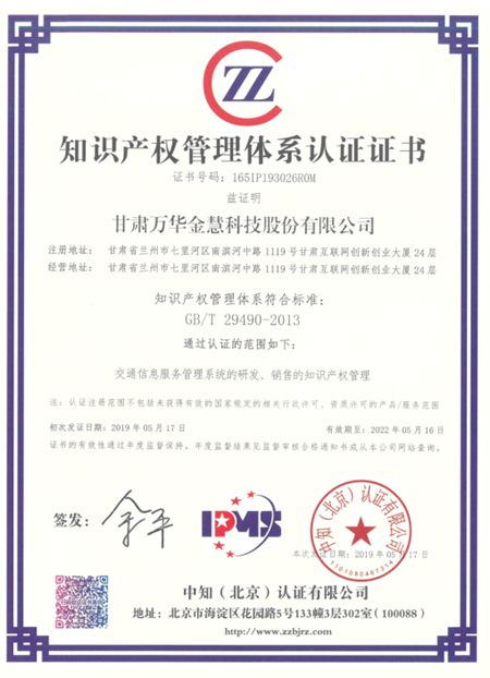 5月20日,甘肅萬華金慧科技股份有限公司首次通過《企業(yè)知識產(chǎn)權(quán)管理規(guī)范》國家標(biāo)準(zhǔn)審核認(rèn)證,并收到由中知(北京)認(rèn)證有限公司發(fā)布的《知識產(chǎn)權(quán)管理體系認(rèn)證證書》。這意味著萬華金慧在知識產(chǎn)權(quán)領(lǐng)域得到重要認(rèn)可,在知識產(chǎn)權(quán)方面得到進(jìn)一步規(guī)范,在綜合競爭力方面得到進(jìn)一步提升。