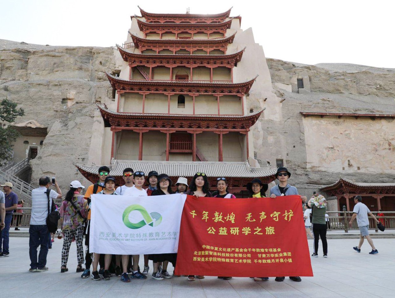 6月22日,由中國華夏文化遺產(chǎn)基金會(huì)千年敦煌專項(xiàng)基金公益支持,北京數(shù)聚智連科技股份有限公司策劃的“千年敦煌·無聲守護(hù)”公益研學(xué)之旅在千年敦煌·月牙泉小鎮(zhèn)火熱開啟。來自西安美術(shù)學(xué)院特殊教育藝術(shù)學(xué)院的老師及優(yōu)秀學(xué)員參加本次活動(dòng),用實(shí)際行動(dòng)“無聲”守護(hù)敦煌文化藝術(shù)。