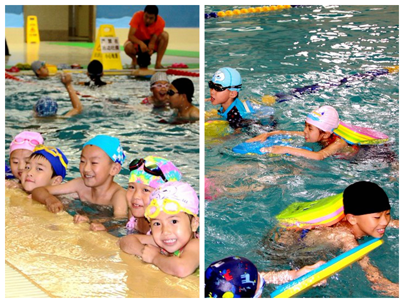 結(jié)束了早上的國(guó)學(xué)之旅,下午,小營(yíng)員們帶著裝備來(lái)到萬(wàn)華室內(nèi)游泳館,盡情享受游泳帶來(lái)的快樂(lè) 。在淡藍(lán)色的泳池旁,小營(yíng)員們們個(gè)個(gè)都很興奮,換好游泳衣,戴上漂亮的泳帽和泳鏡,開(kāi)始接受游泳教練的專(zhuān)業(yè)指導(dǎo),排隊(duì)、熱身、逐個(gè)下水培養(yǎng)水感。有的小朋友盡管第一次下水,但有模有樣學(xué)習(xí)游泳技能,跟著教練揮臂、蹬腿,動(dòng)作規(guī)范,很快就不再懼怕水花的拍打。系上安全浮板的小營(yíng)員們,漂浮在水面上,劈水、彈腿、蹬腳……像小鴨子一樣在泳池里游來(lái)游去,開(kāi)心愉快。每張濕漉漉的稚氣小臉上,始終洋溢著歡樂(lè)的笑容。直到活動(dòng)結(jié)束時(shí),小營(yíng)員們意猶未盡,戀戀不舍地離開(kāi)泳池。