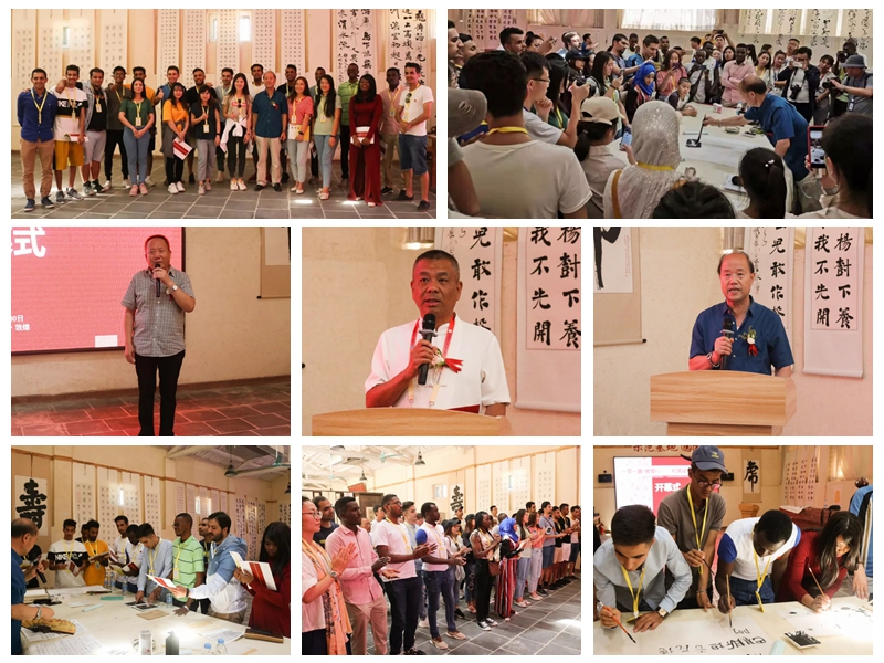牛新偉在致辭中說,舉辦這場書法展,是月牙泉小鎮(zhèn)的榮幸,也是敦煌文化界書法愛好者開展文化交流的一次盛會(huì)。這不僅為國內(nèi)外書畫愛好者提供學(xué)習(xí)互動(dòng)的平臺(tái),也必將對(duì)加強(qiáng)敦煌與一帶一路沿線國家文化藝術(shù)的合作交流產(chǎn)生積極影響。希望各位留學(xué)生在今天的學(xué)習(xí)中有所收獲,有所突破,共同推動(dòng)中外文化的交流。