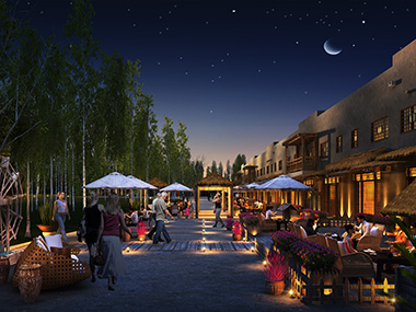 項目地東側(cè)緊鄰敦煌市最有特色的高端酒店敦煌山莊,東北側(cè)與新建成的華夏大酒店相連接,西側(cè)更接壤國際頂級度假酒店悅榕莊。敦煌最大的宗教活動場所、著名佛教景點雷音寺在敦月路東側(cè)與項目一期月牙泉小鎮(zhèn)隔街相望。項目周邊500米半徑內(nèi),有市場、學(xué)校、動漫產(chǎn)業(yè)園、村落等,商業(yè)環(huán)境成熟,資源豐富,區(qū)位優(yōu)勢極為顯著,位置獨一無二。